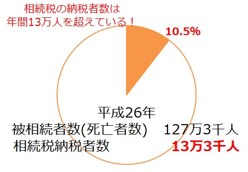 また、既に平成26年の年間相続税の納税者(相続人)の人数は既に13万3千人(10.5%)に達しています。